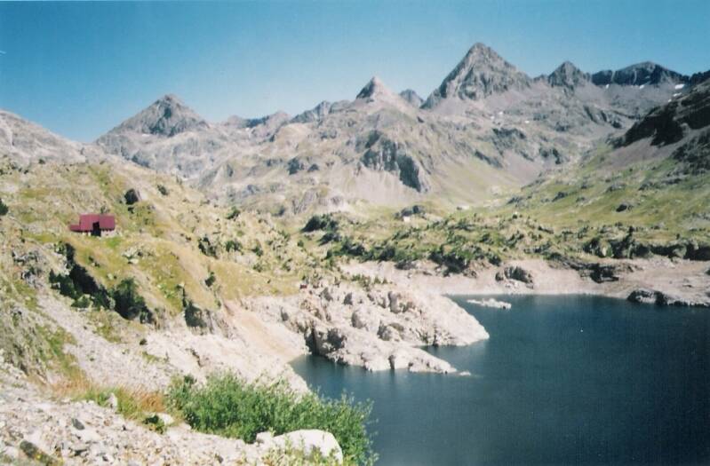Rodeo el ibón por su izquierda, paso junto a algunas viejas construcciones, y alcanzo, al fin, el refugio de Respomuso, sobre los 2.200 metros de alto. Tiempo hasta el mismo 2,30 horas.