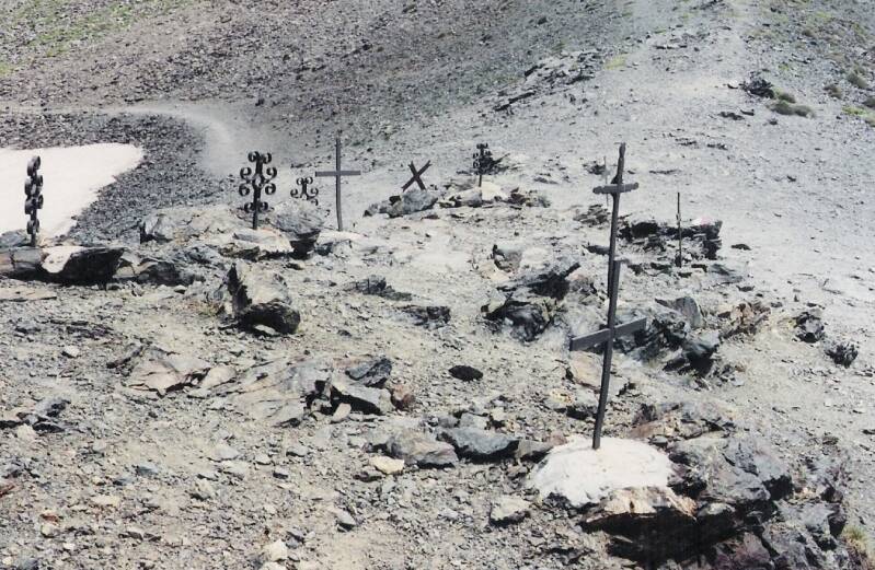 Comienzo, después, a subir por un sendero que, en diagonal y de manera bastante suave y fácil, me conduce, sin ninguna clase de complicación, hacia la cima del pico al que me dirijo. En menos de 15 minutos llego a la cumbre del Noucreus (2.799 mts.). Después, vuelvo al collado, ya que es un lugar realmente fotogénico. A pesar del nombre, Noucreus (Nueve cruces), me entretengo a contarlas y veo que hay alguna más. Creo que están puestas entre 12 y 13 cruces de hierro, todas distintas. Desde el collado, en muy poco rato y en dirección derecha, llego a la cima del Pic de la Fossa del Gegant (2.808 mts.). Unas 2,30 horas hasta aquí.