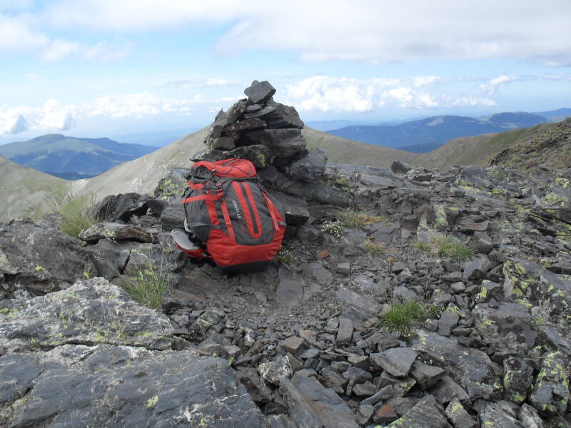 Prosigo hacia adelante y, en poco rato más, llego a la cima del Cim Baix de les Arques (2.782 mts.). De nuevo otro mojón de piedras en su cumbre. Son dos cimas muy cercanas y parecidas, razón por la cual comparten nombre.