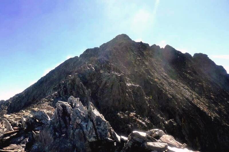 Girando hacia la derecha continuamos por la cresta de Lustou. La cresta tiene algunos pasos aéreos y la roca está algo descompuesta, pero en general es sencilla. Hacia los 2.950 metros de alto pasamos junto a los restos de un cobijo. Después, en unos 10 minutos más, alcanzamos la cima del Lustou (3.024 mts.). En total, aproximadamente, 4 horas de ascenso. Nos felicitamos mutuamente, ya que hemos hecho un desnivel considerable, casi 1.700 metros. También mutuamente nos hacemos las fotos de rigor y comemos algo.